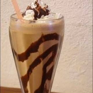Leche entera, café, azucar chocolate líquido Hershey, crema batida y chispas chocolate,