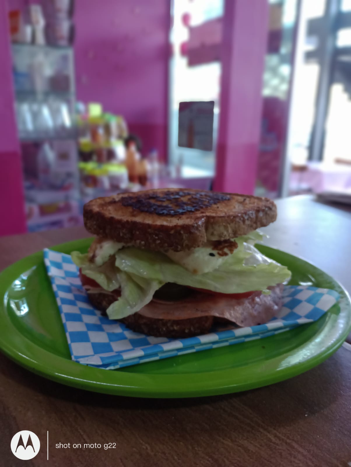 Frijol, mayonesa, pierna, piña, lechuga, jitomate.