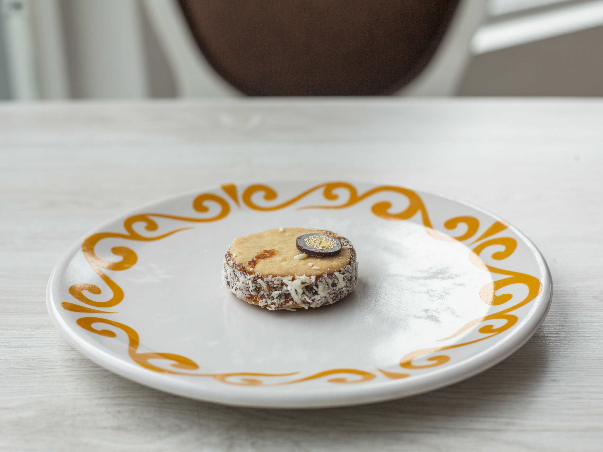 ¡La galleta mas pedida de Giandora! Galleta de mantequilla rellena de dulce de leche, decorada con coco rallado.