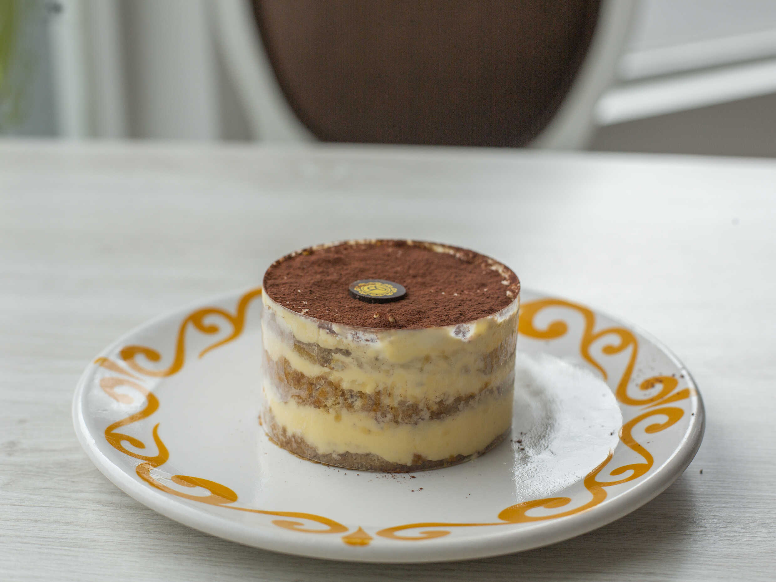 Bizcocho bañado en espresso, alternado con crema de queso mascarpone y un toque de cocoa.