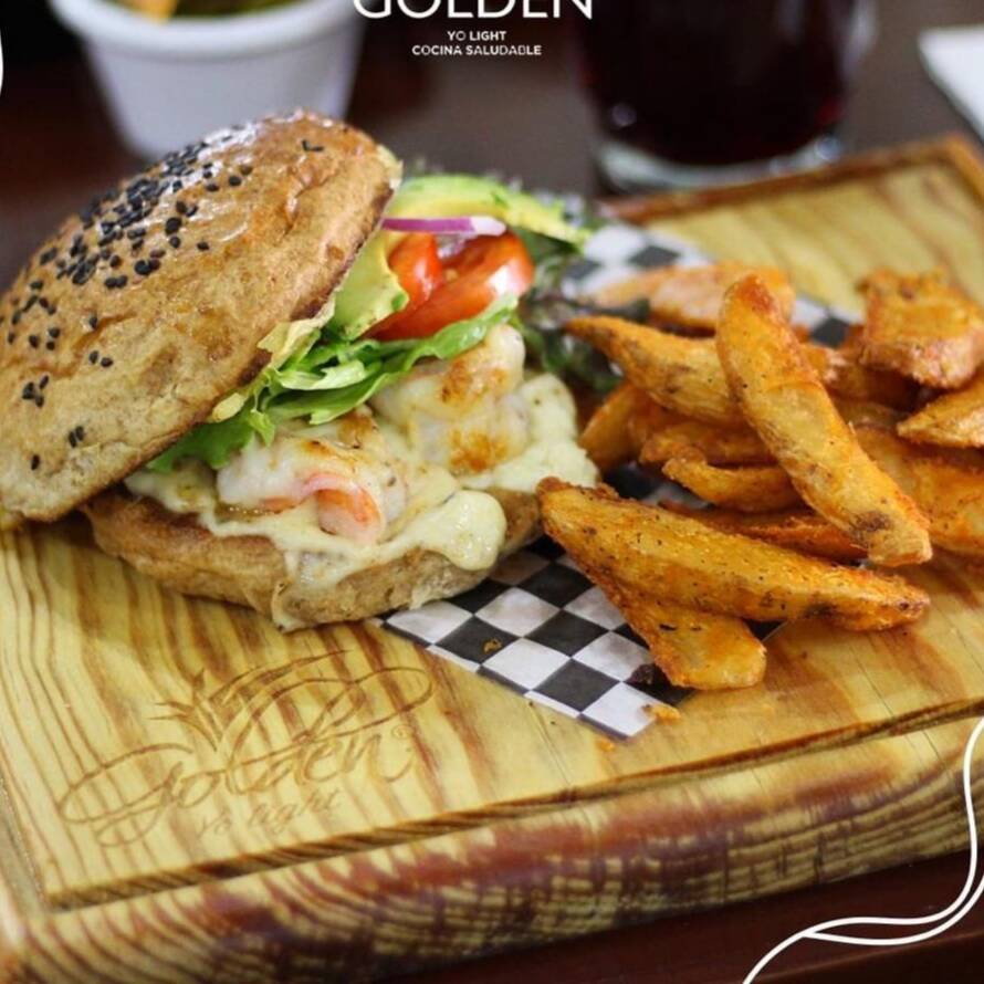 Pechuga de pollo , jamón , espinaca, germen de alfalfa, cebolla morada, y jitomate cherry caramelizado, queso manchego, aderezo de jalapeño acompañado de papas a la francesa