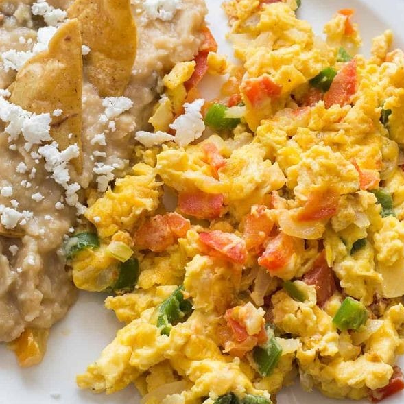 revueltos o fritos , jamón , chorizo de soya , rancheros o a la mexicana