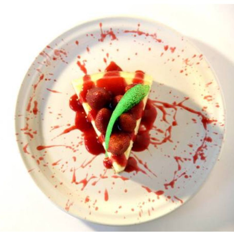 salmon sobre betabel asado y reducción de vino blanco acompañado de ensalada del campo