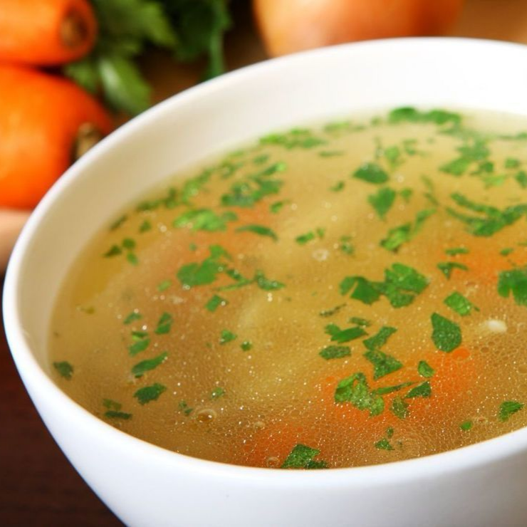 de picadillo de soya o queso panela , sobre espejo de caldito de jitomate , crema y fritura de tortilla