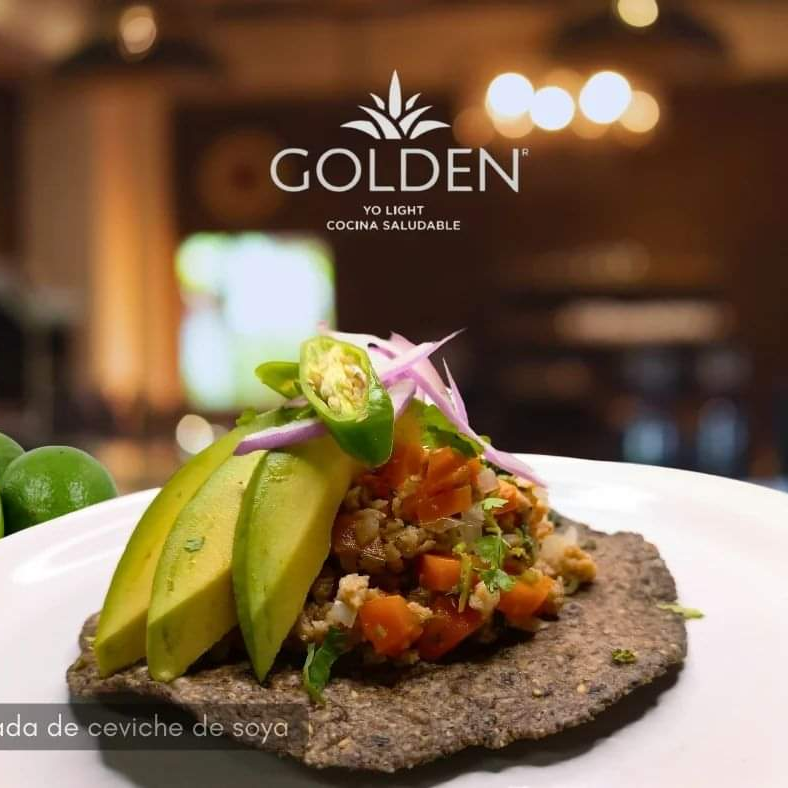 Deliciosa soya acompañada de aguacate , cebolla encurtida , zanahoria y vinagreta especial sobre tostada de maíz quebrado