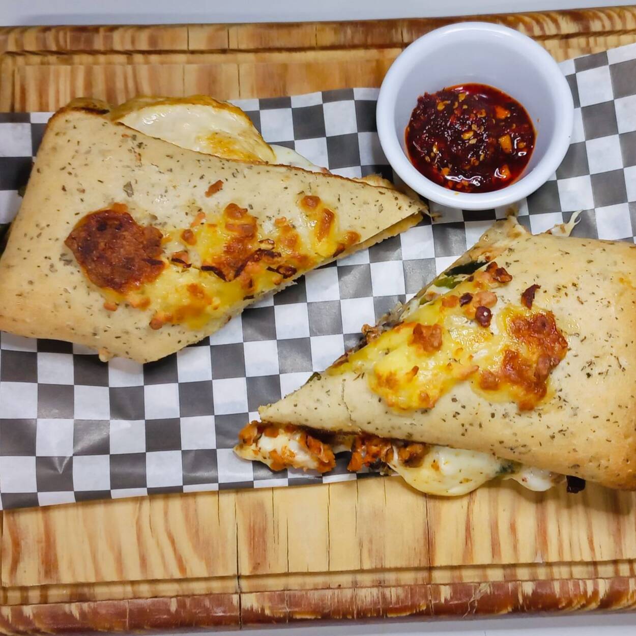 Queso Oaxaca, queso amarillo, soya, champiñones , espinacas y milanesa gluten (MIERCOLES 2X1)