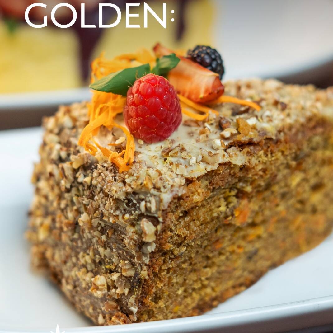 En costra de ajonjoli , cocinado en aceite de cilantro con champiñón y papas cambray a las finas hierbas con espinacas salteadas y jitomate cherry