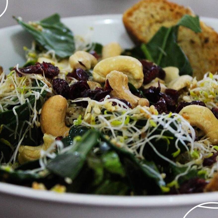 Lechuga sangría , espinaca , germen de alfalfa, nuez de la india , arándanos y ajonjolí dulce