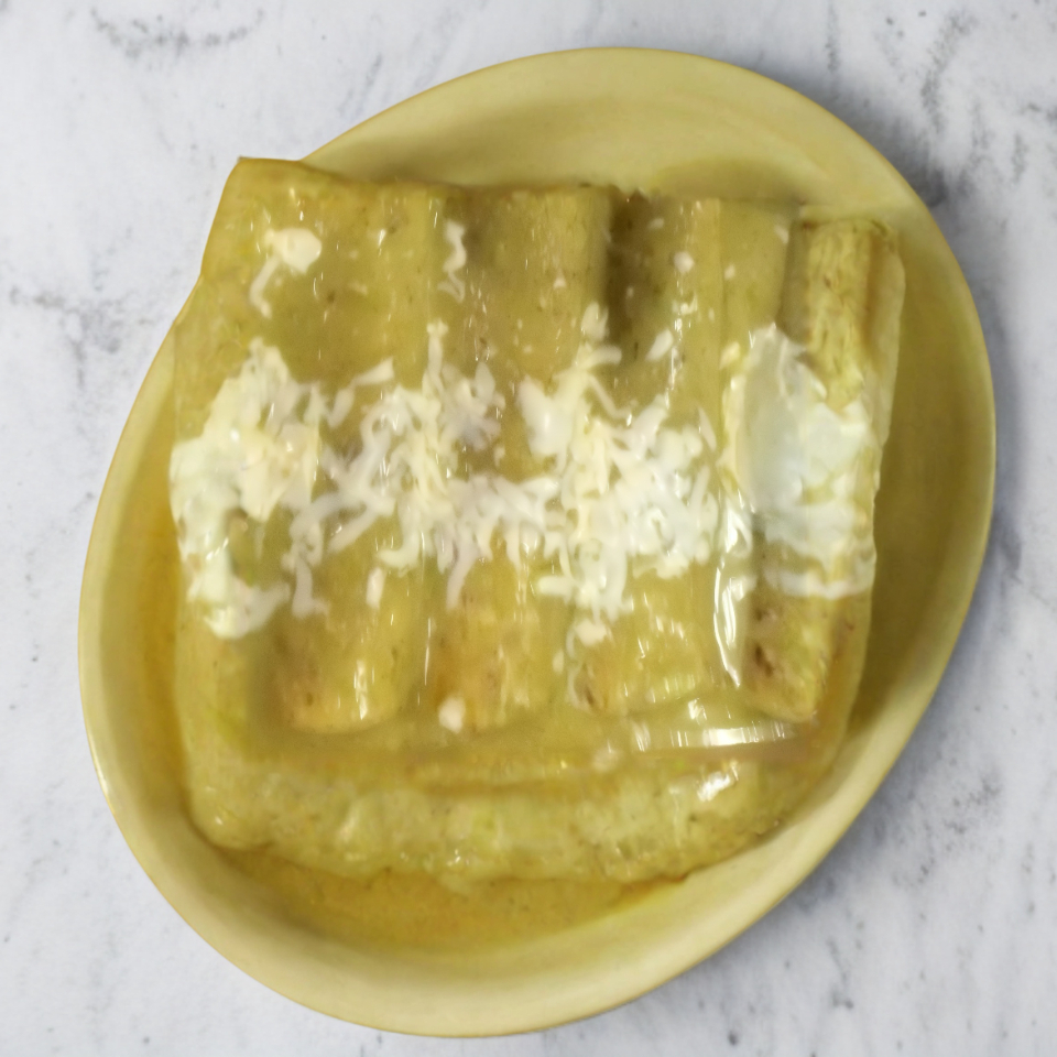 5 piezas de tacos dorados de pollo lechuga queso crema salsa
