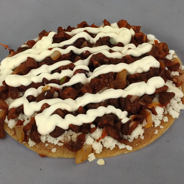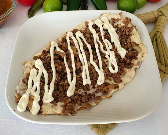 80gr de migaja, 50gr de queso Oaxaca, frijoles, cebolla y crema.