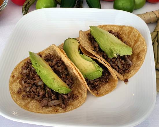 3 piezas. 100gr de bistec, cebolla y aguacate.