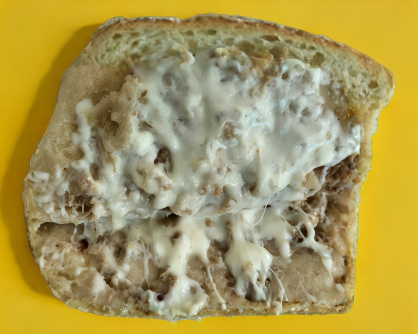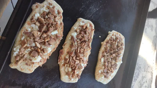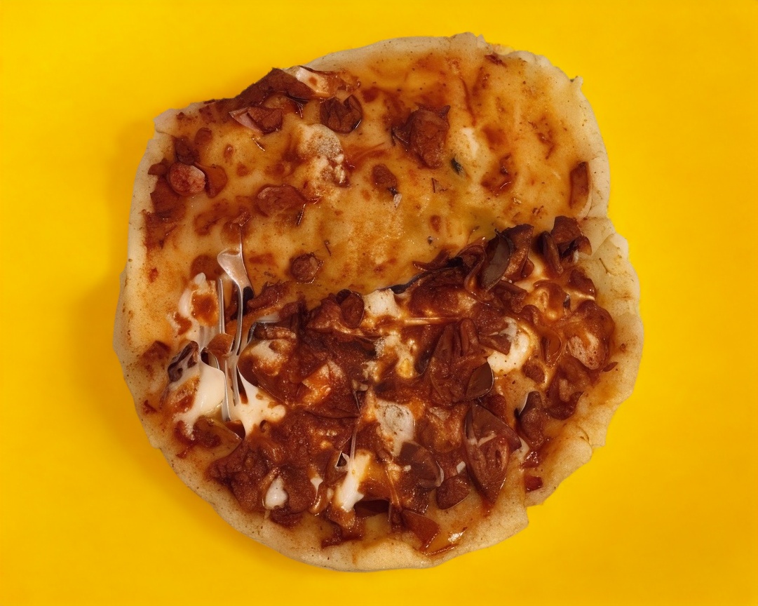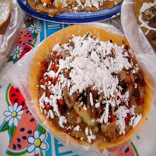 Tortilla de masa gruesa de maíz rellena migajas y queso oaxaca. 1 pz
