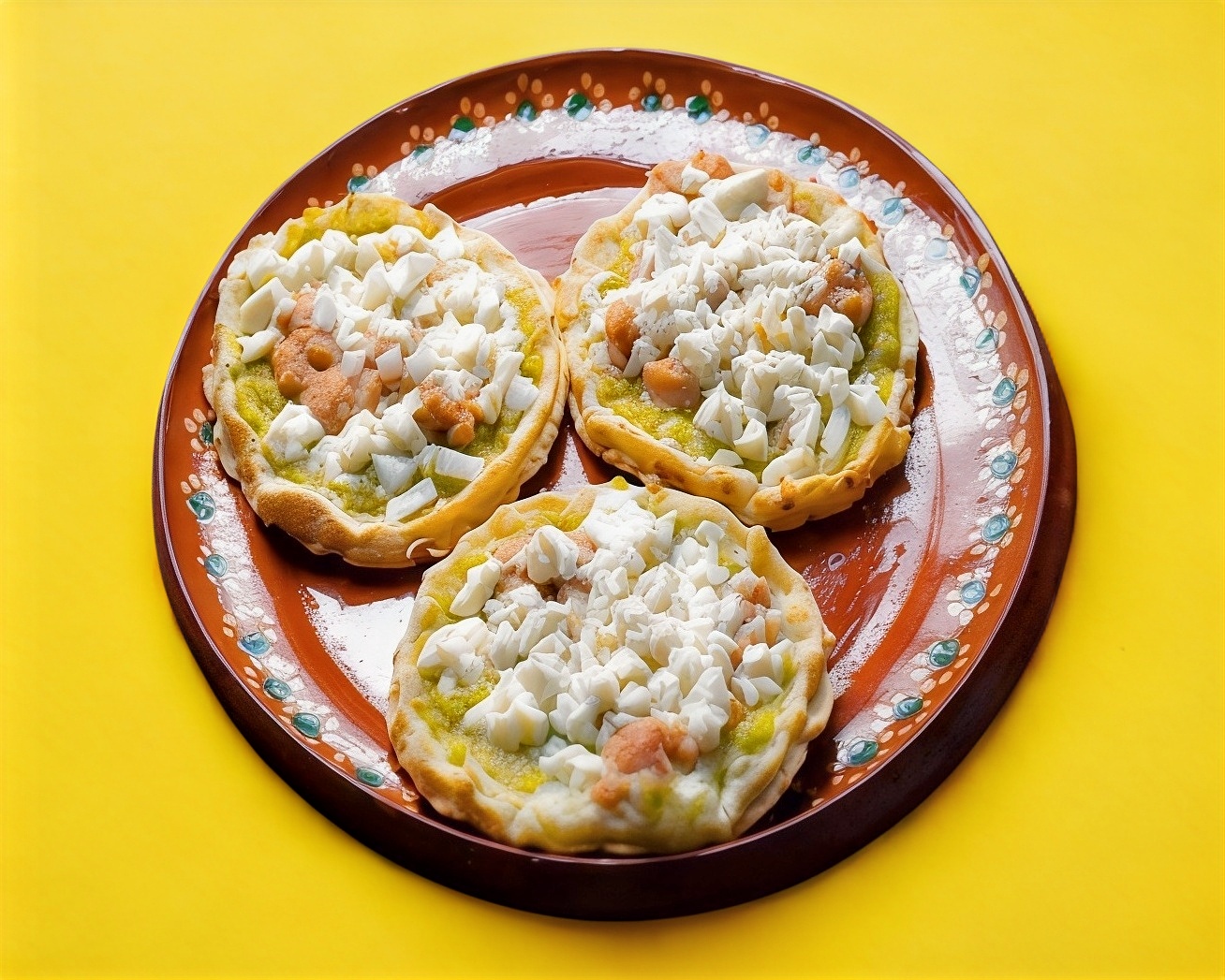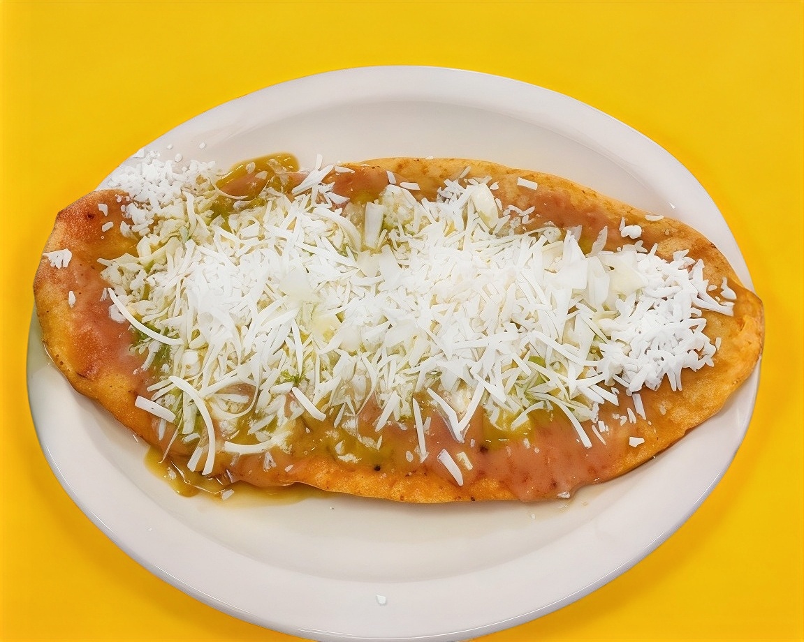 Tortilla de masa de maíz gruesa rellena de frijol, acompañado de queso oaxaca, 1 pz.