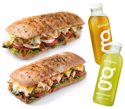Pollo grill, pechuga de pavo, queso manchego, pepino, jitomate, cilantro, lechuga italiana, espinaca. Garlic alioli y aderezo aguacate