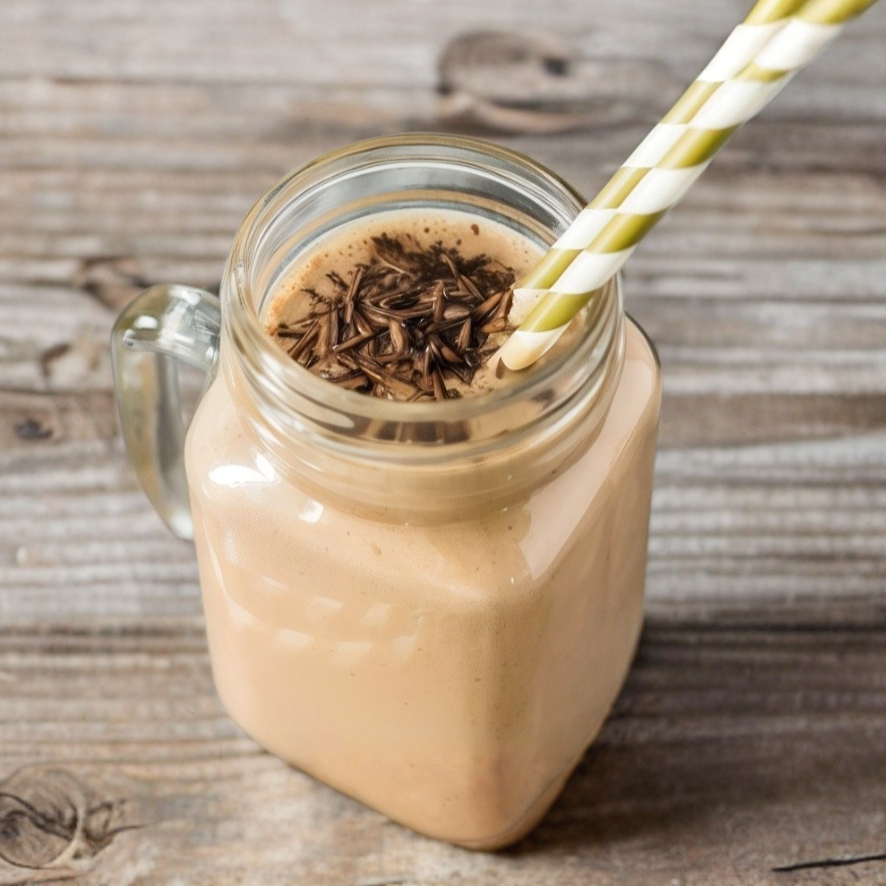 Batido base yogurt griego y leche a elección, cocoa, amaranto, nuez y café.