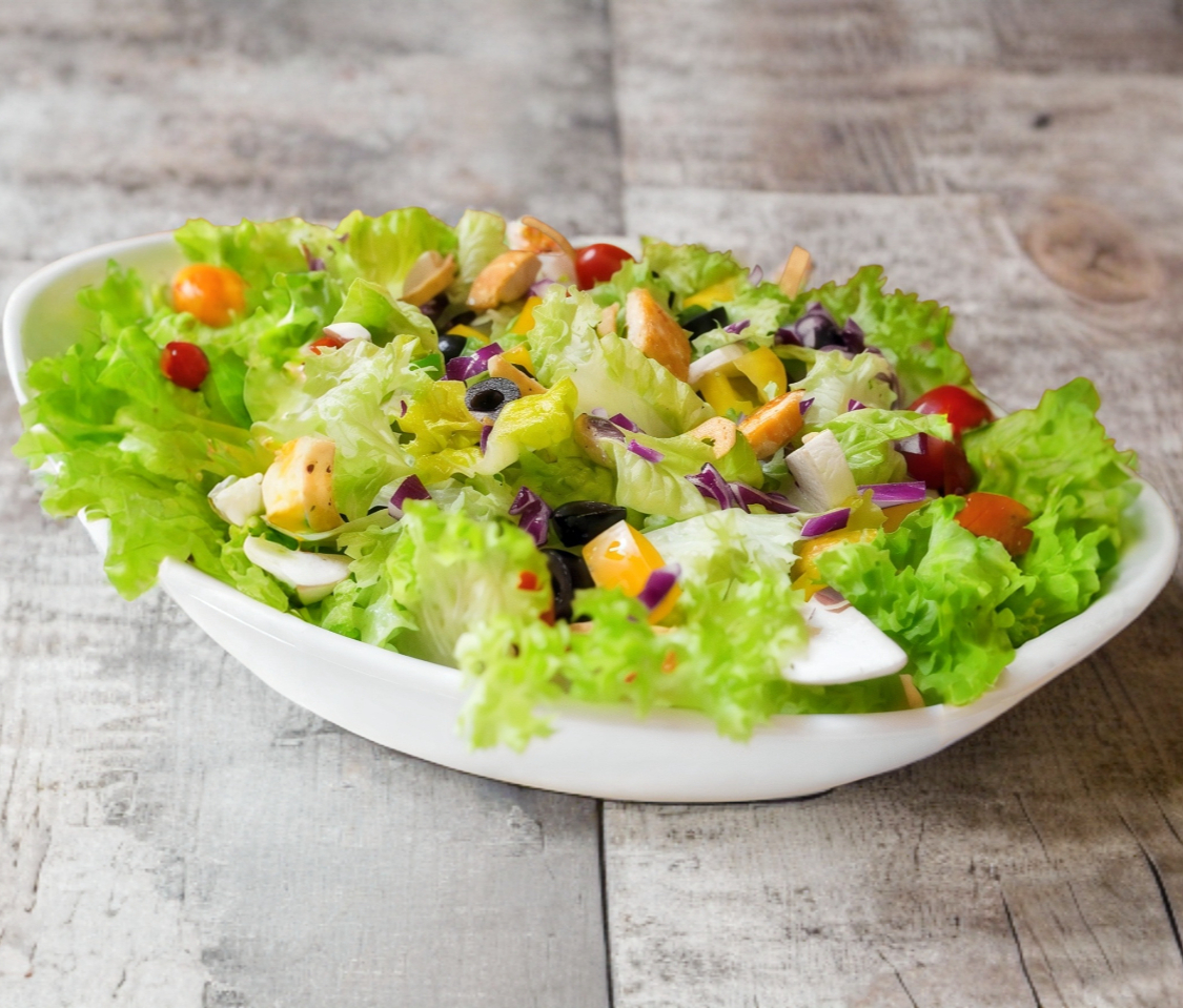 (1 porciones de proteína a tu elección, 2 porciones de barra fría, crotones o tiritas de maiz, aderezo)