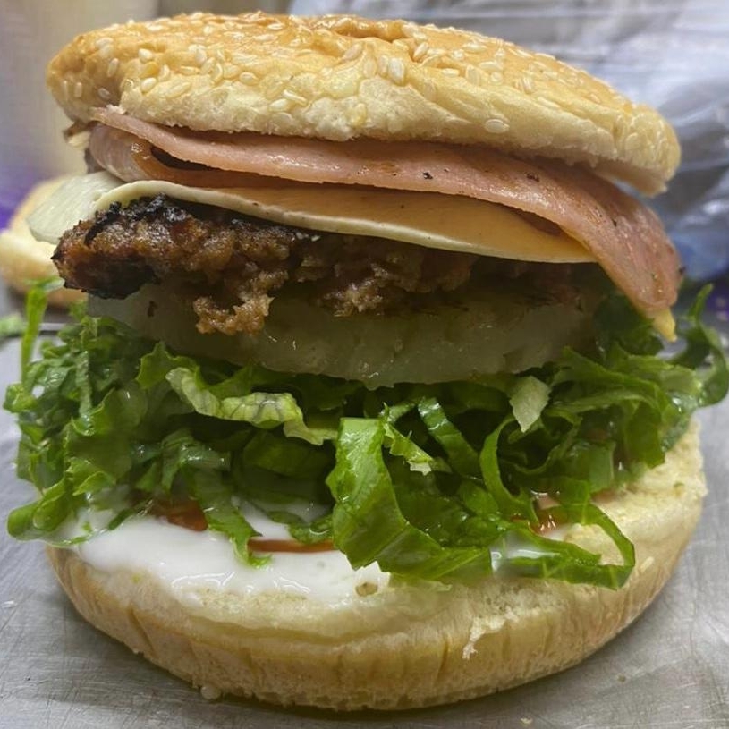 CARNE, QUESO BLANCO, TOCINO, QUESO AMARILLO, JAMÓN Y PIÑA