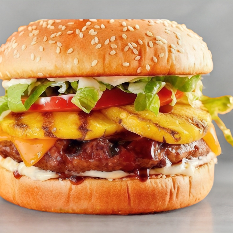 carne para hamburguesa, tocino, salchicha, jamon, queso amarillo, queso blanco ,cebolla frita, aguacate y aderezos