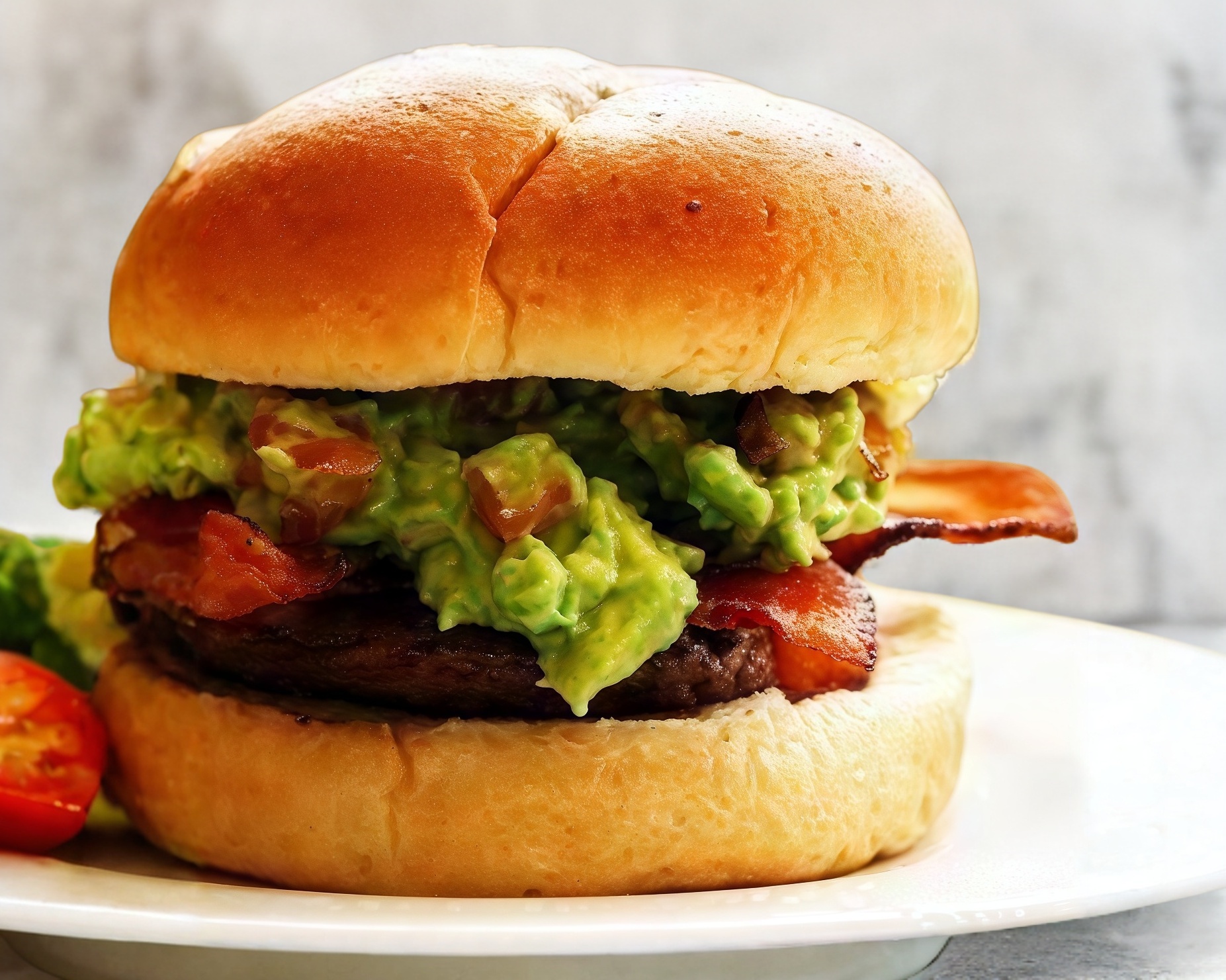 Carne de res, tocino, jamón, queso amarillo, lechuga, guacamole