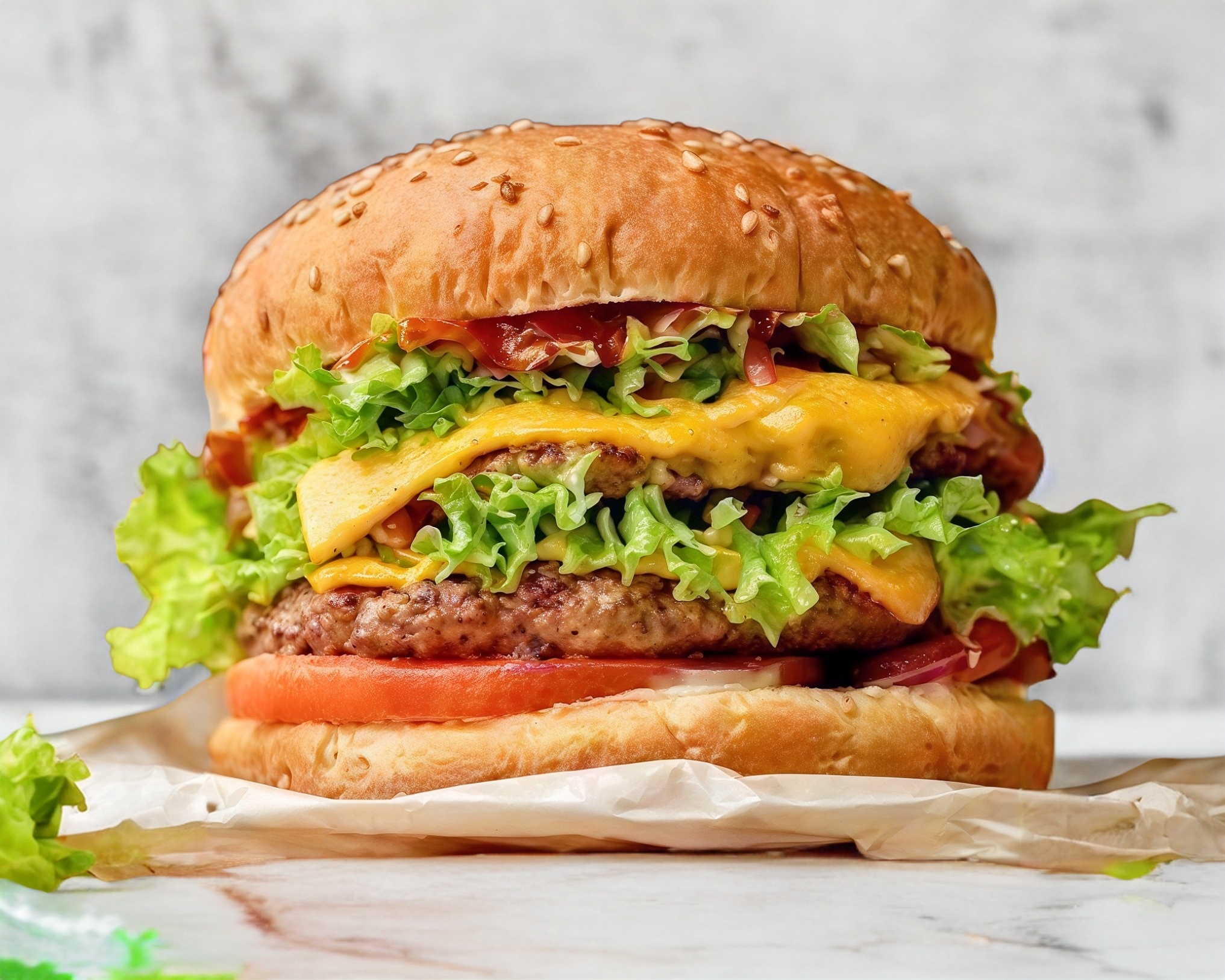 Doble carne de res, jamón, queso amarillo, lechuga, jitomate, aguacate, cebolla, aderezos