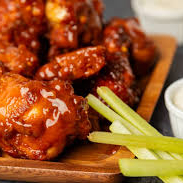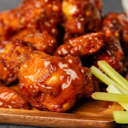 Alitas bañadas en salsa búfalo 7 piezas con papas