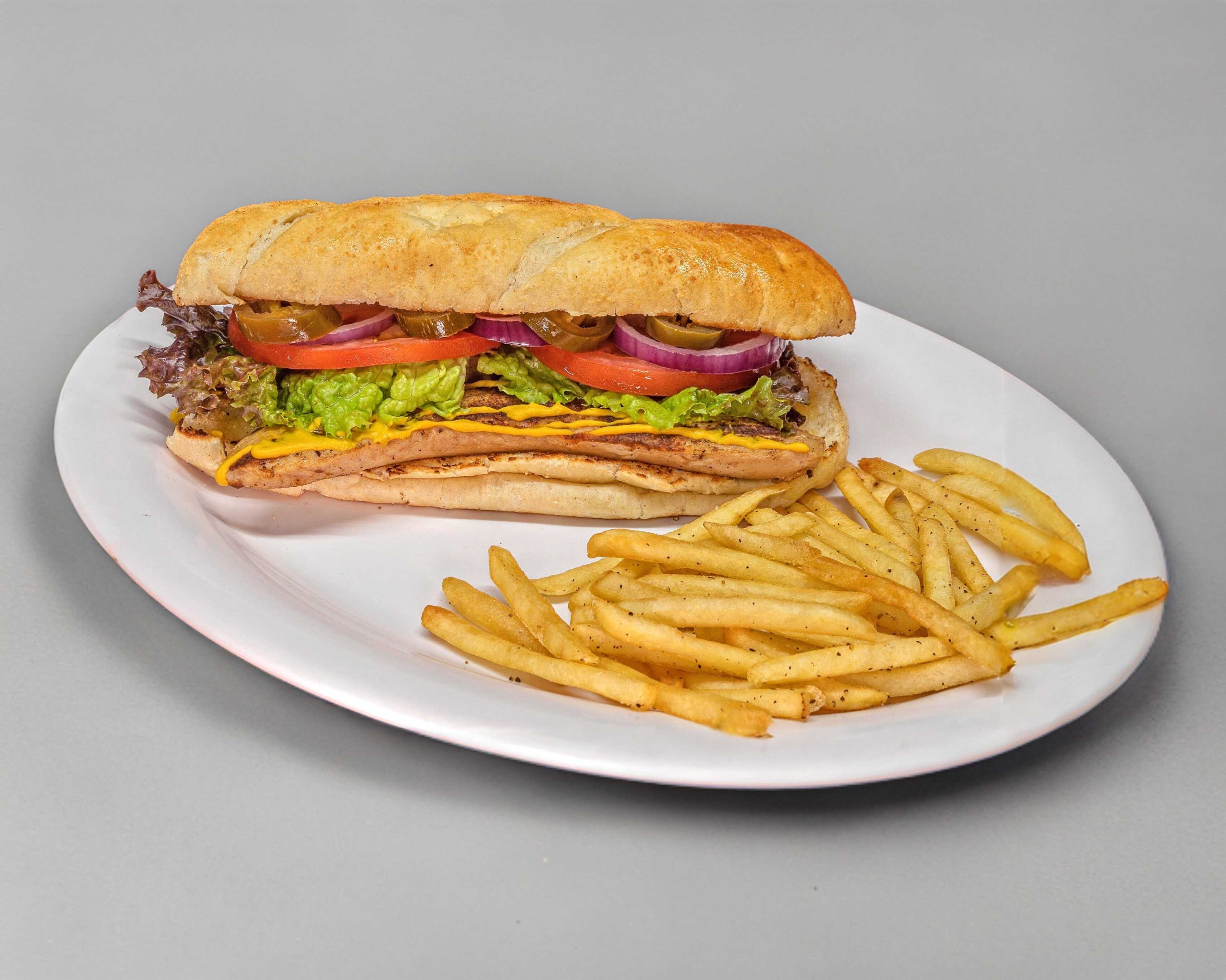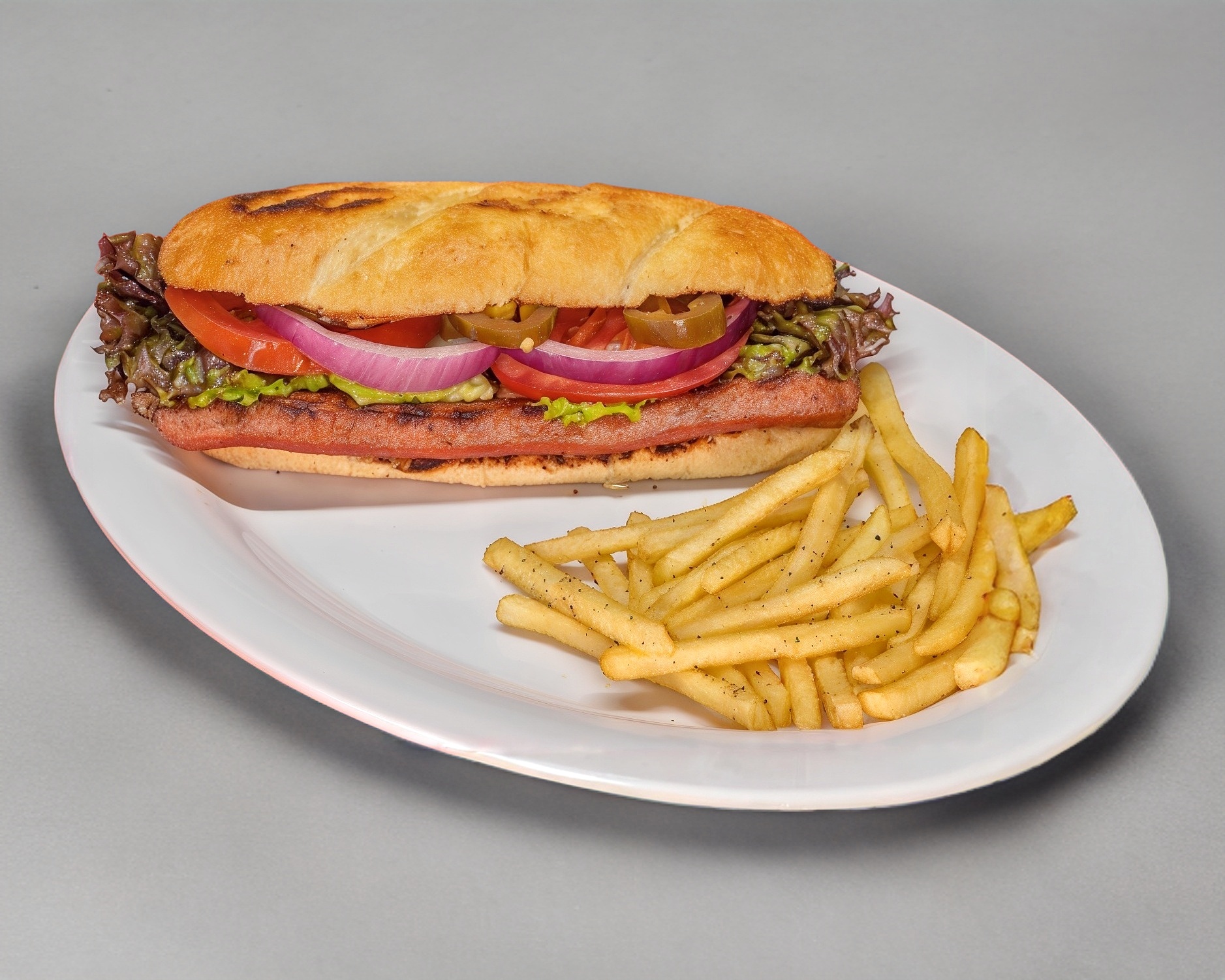Suave salchicha gigante con el sabor tradiciona,l incluye porción de papas.