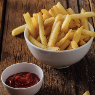 papas a la francesa , catsup , mayonesa , salsa y queso amarillo