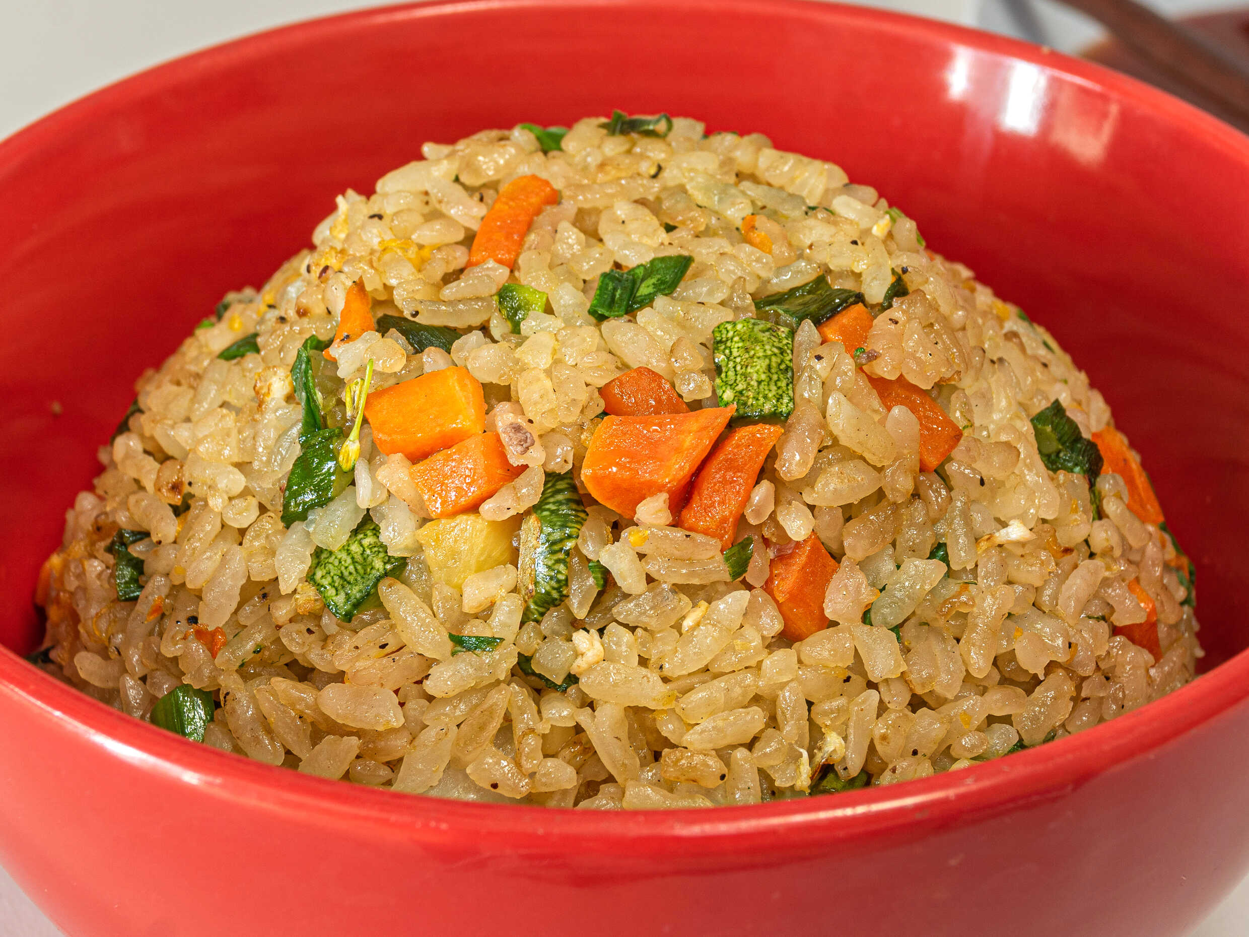 Arroz gohan acompañado en salsa tampico, aguacate, queso, pepino, cangrejo y ajonjolí.
