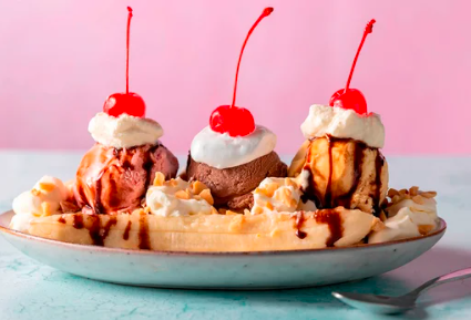 Postre con banana, toppings de la casa y helado a elegir, 650 gr.