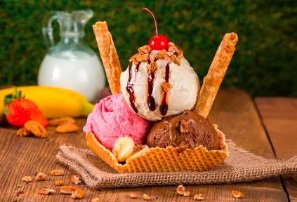 Banana con chocolate y helado sabor a elegir, 350 gr