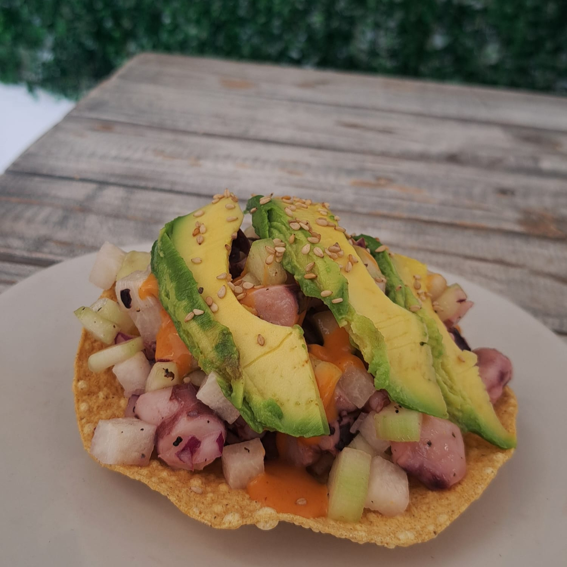 Ceviche de pulpo (Pepino, jicama, cebolla, pulpo)