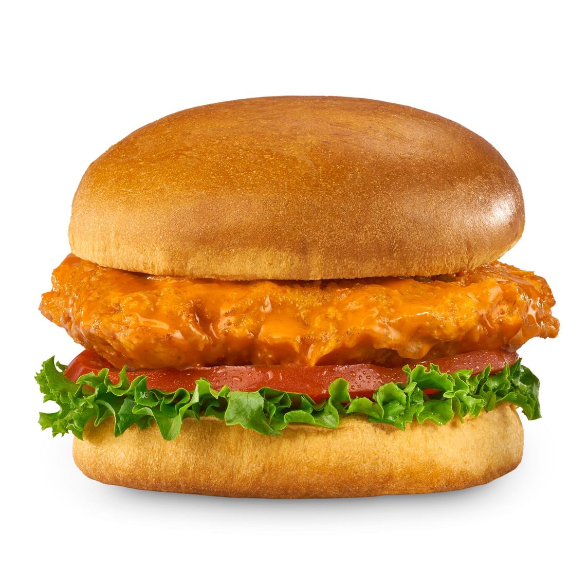 Hamburguesa de pechuga de pollo empanizada (120 g), bañada con tu Wing Sauce favorita, lechuga Italiana y jitomate. Incluye papas.