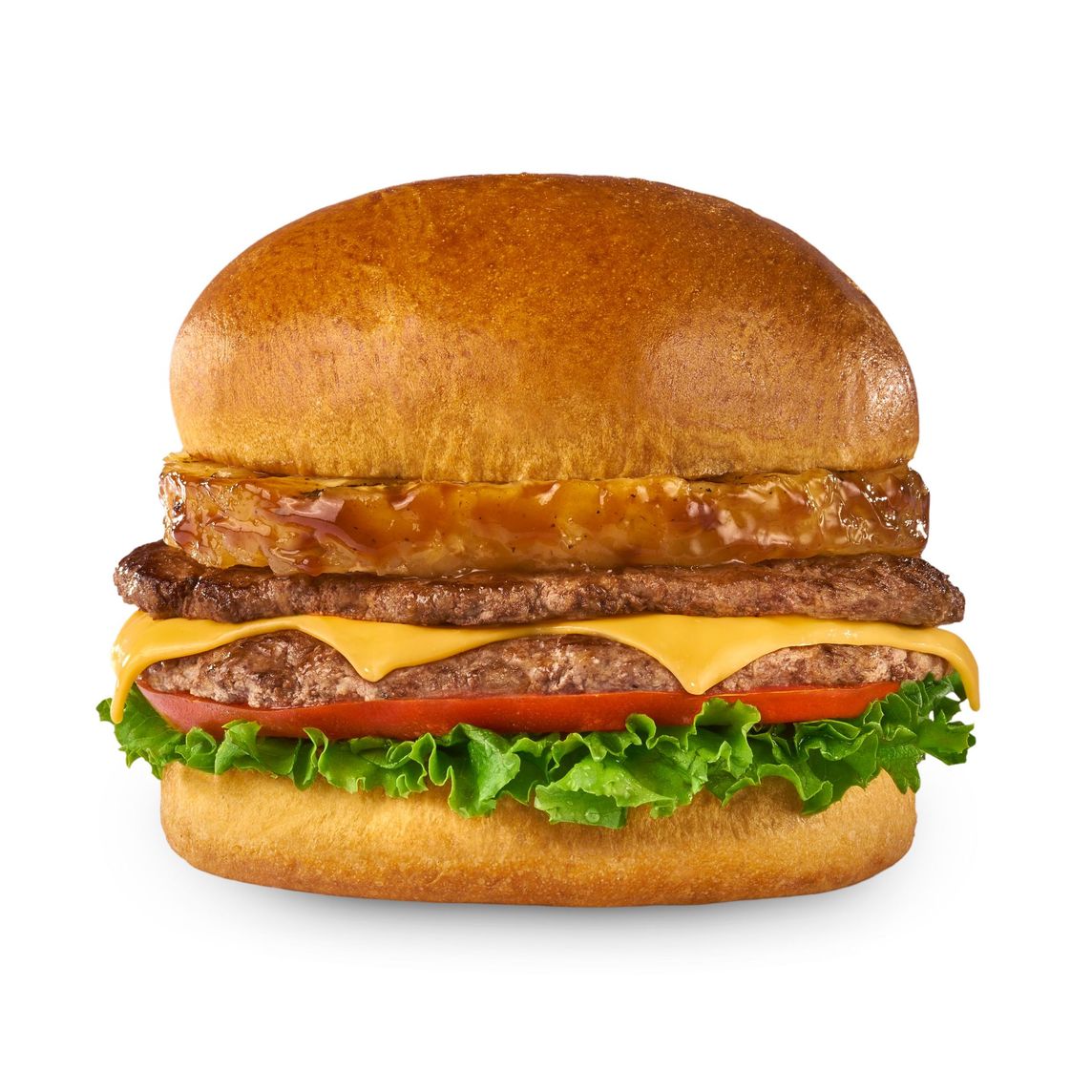 Hamburguesa de res a la plancha (150g), con queso americano, lechuga italiana, piña asada y salsa BBQ.