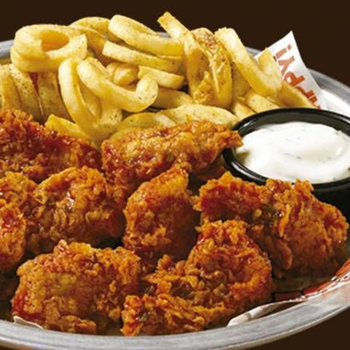 Incluye Boneless S de 280 grs (10 piezas), 2 salsas y 1 aderezo a elegir y 1 papas curly.