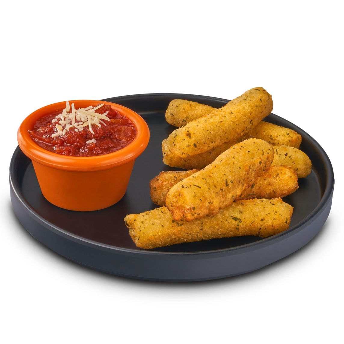 Dedos de mozzarella empanizados ultra crunchy, con queso derretido al centro, acompañados de salsa marinara caliente con toque de queso parmesano (6 pzas).