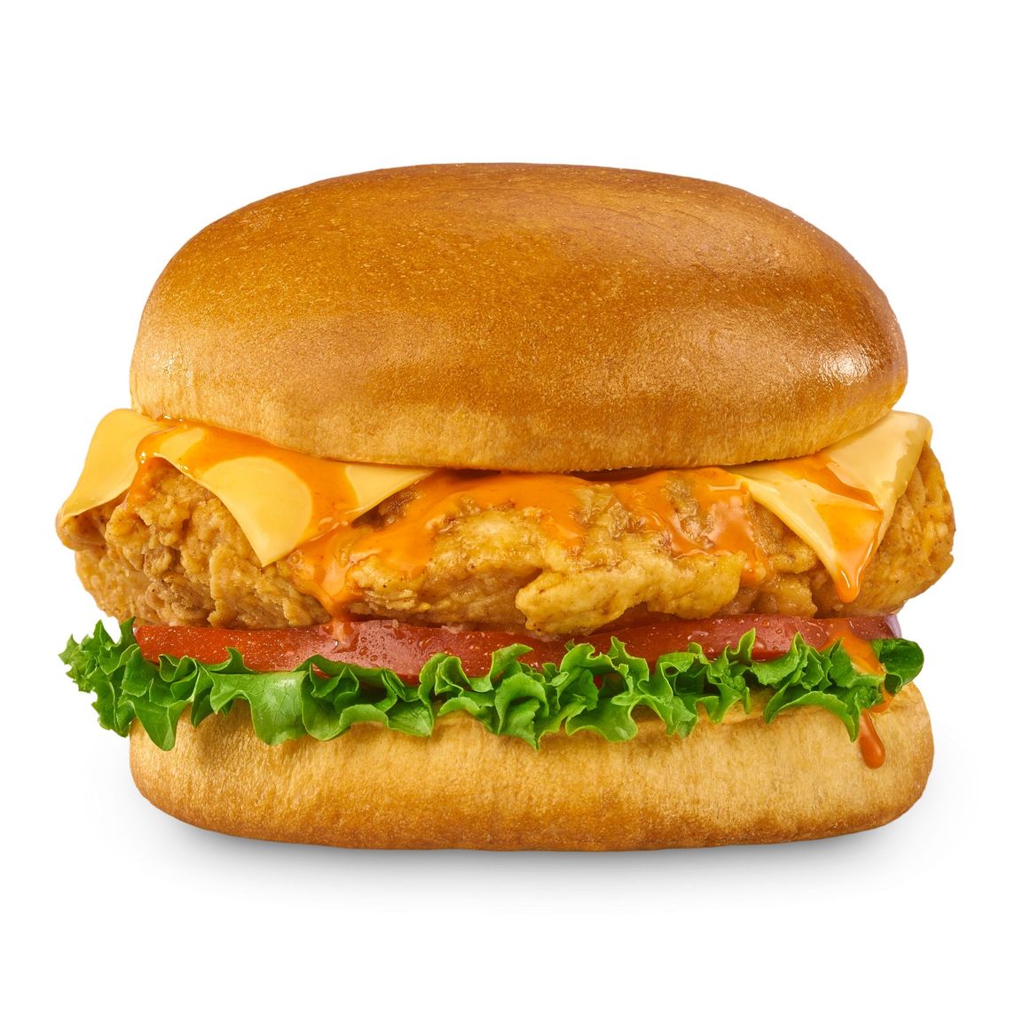 Pechuga de pollo empanizada (120 g), queso americano, lechuga italiana, jitomate, cebolla y un toque de nuestra salsas hot wings.