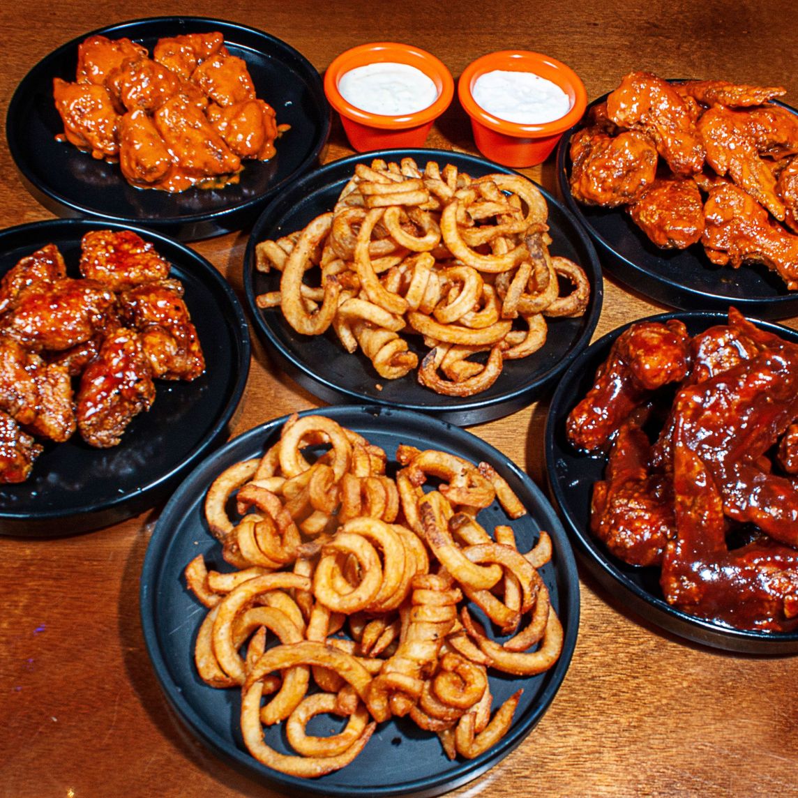 Incluye: 2 órdenes de papa curly (680 g), 20 pzas Boneless (560 g), 20 pzas Wings (1,060 g) bañados con tu Wing Sauce favorita con el aderezo de tú elección y 2 cervezas (355 ml).