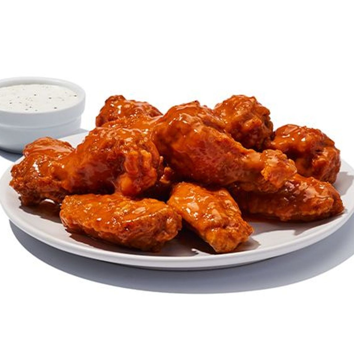 Alitas sin empanizar, fritas y bañadas con tu Wing Sauce favorita. 530 g (10 pzas). Aderezo a elección.