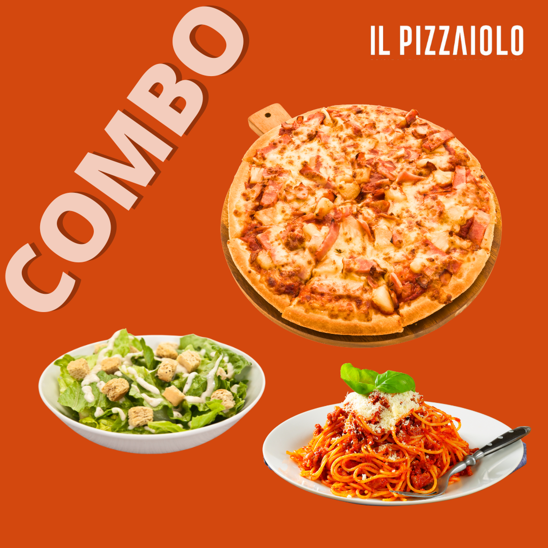 Pizza Hawaiana +1 Pasta Bolognesa + Ensalada Cesar
