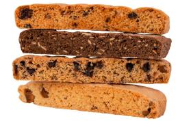 Galleta italiana de: moka, pistache y almendra, chocolate con avellana y nuez con pasas.
