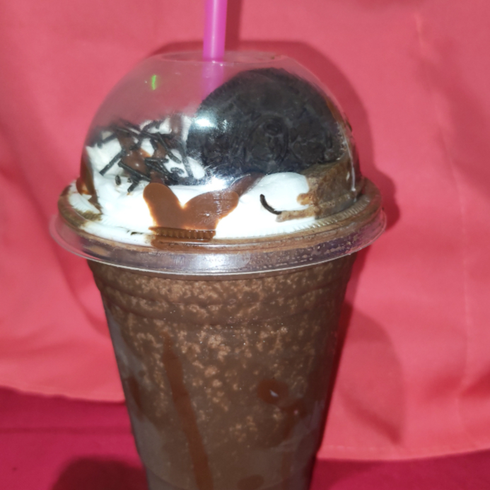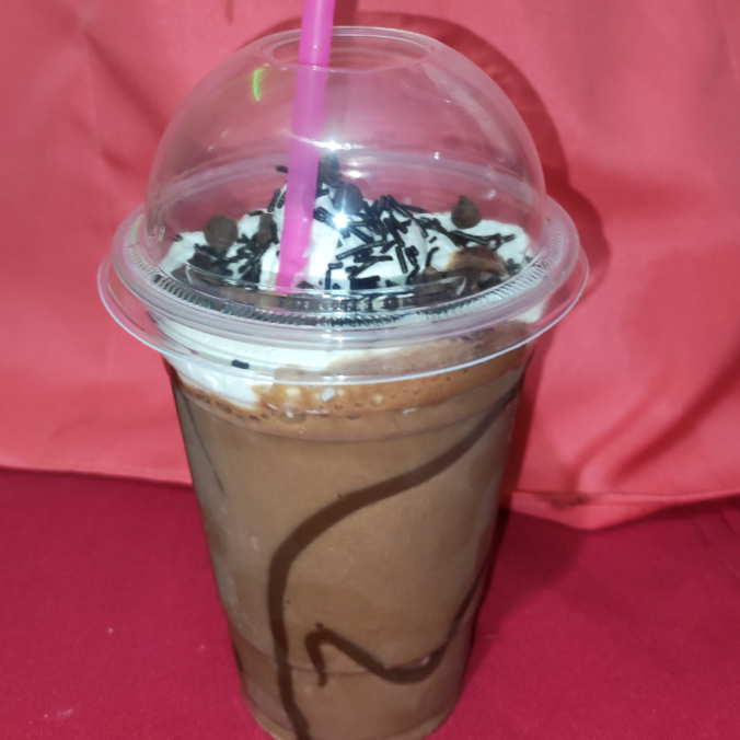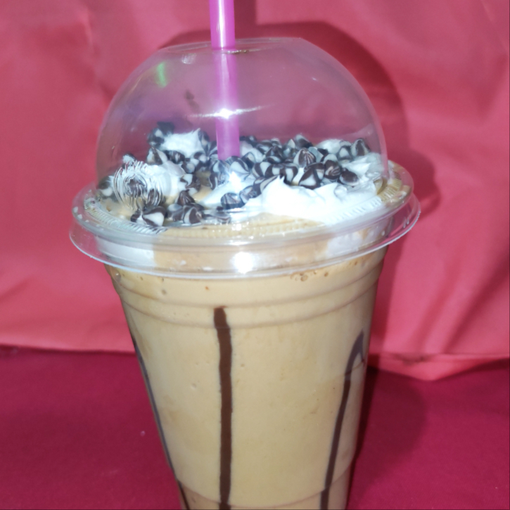 Cremoso frappé hecho con café soluble, coronado con crema batida y chispas sabor café.