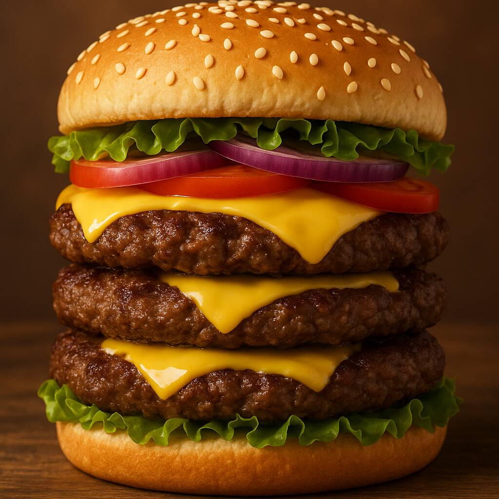 Pan, dos carnes de 115 GRS, tocino,queso, verduras, catsup, mayonesa,mostaza y chiles en vinagre