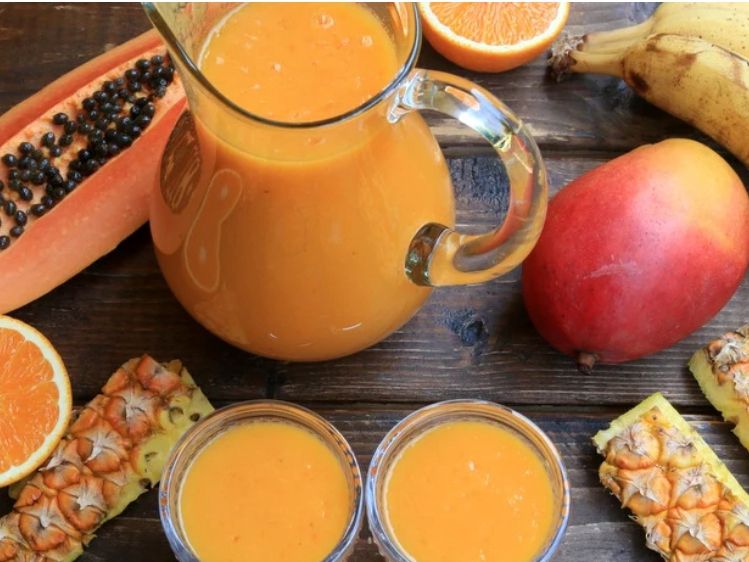 Naranja, zanahoria, limón,guayaba,piña y un toque de gengibre