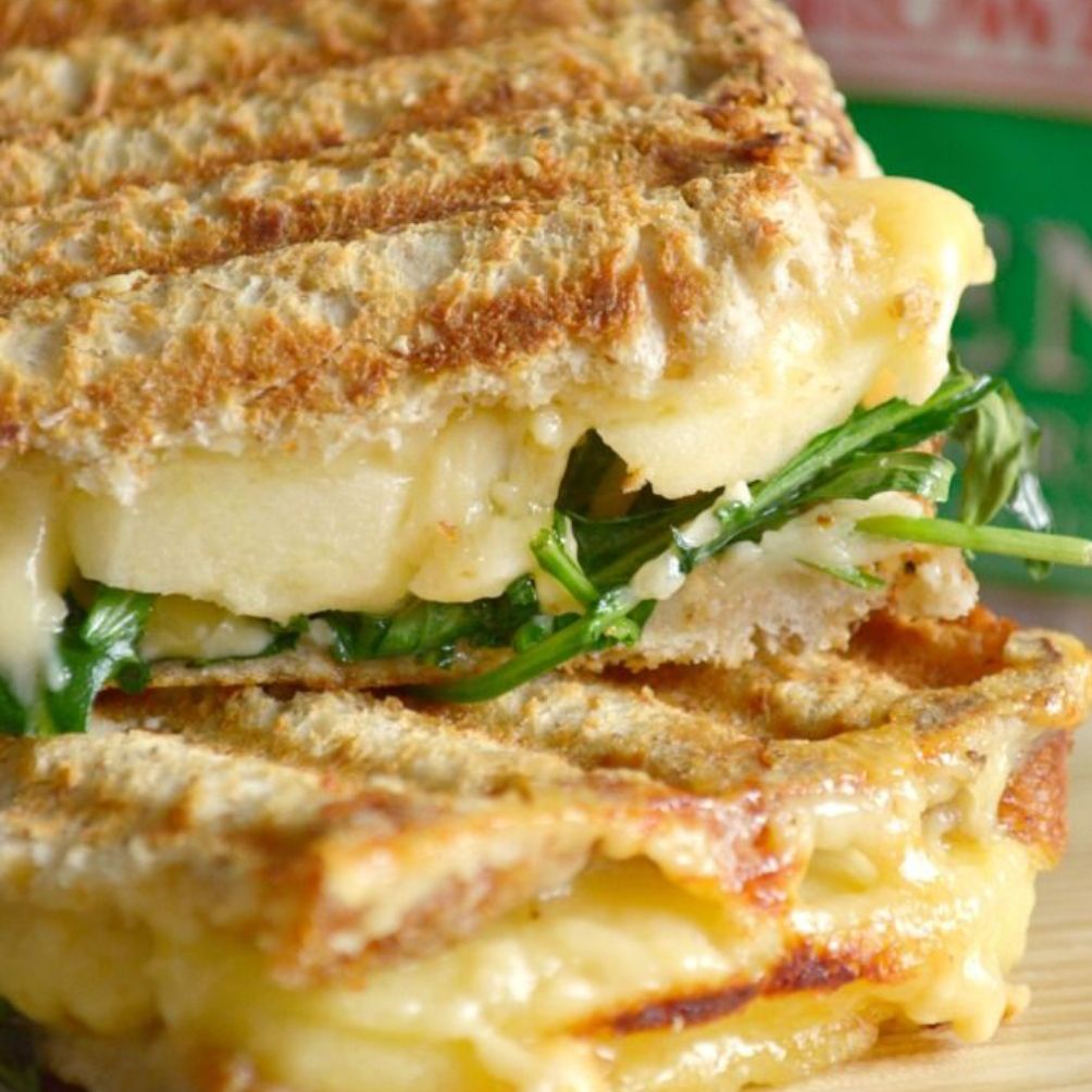Pan artesanal, aderezo, mezcla de quesos, jitomate, espinacas y un toque de pesto.