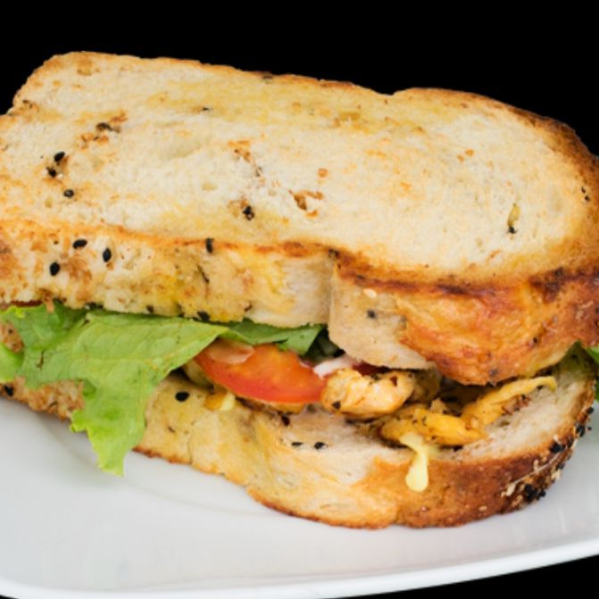 Delicioso pan artesanal con aderezo de la casa, mezcla de quesos, boneless barbecue, jitomate, aguacate y lechuga, acompañado de salsa de chipotle