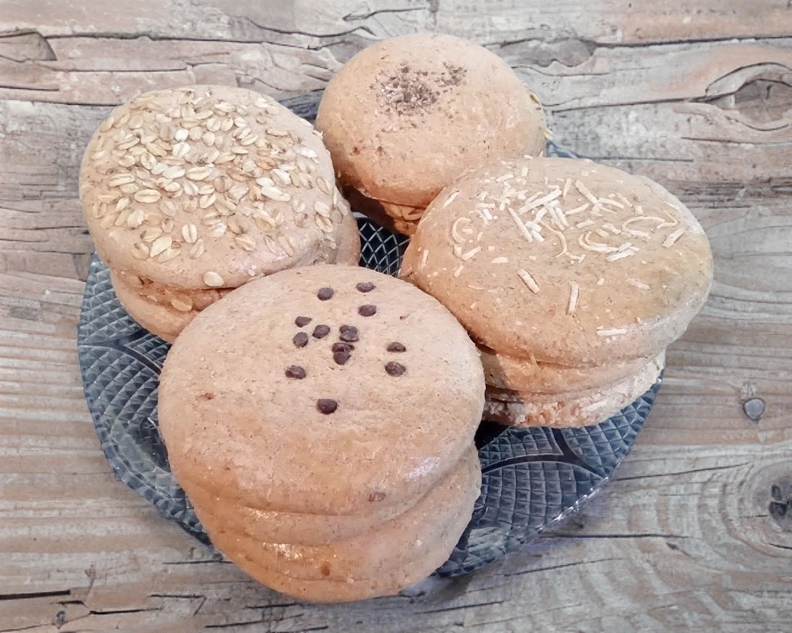 Galletas grandes, integrales, puedes elegir entre avena, coco, nuez y chocolate