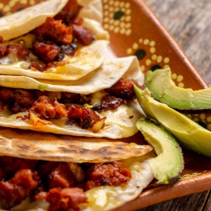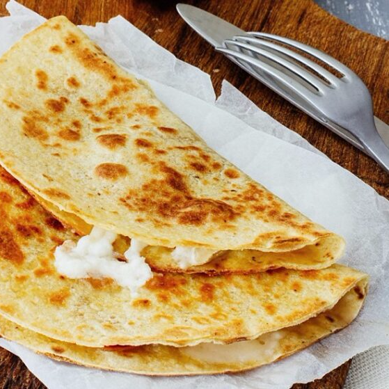 Orden de 3 quesadillas se sirven con 3 tortillas de su preferencia y queso blanco, acompañado de picante de tu preferencia aparte.
