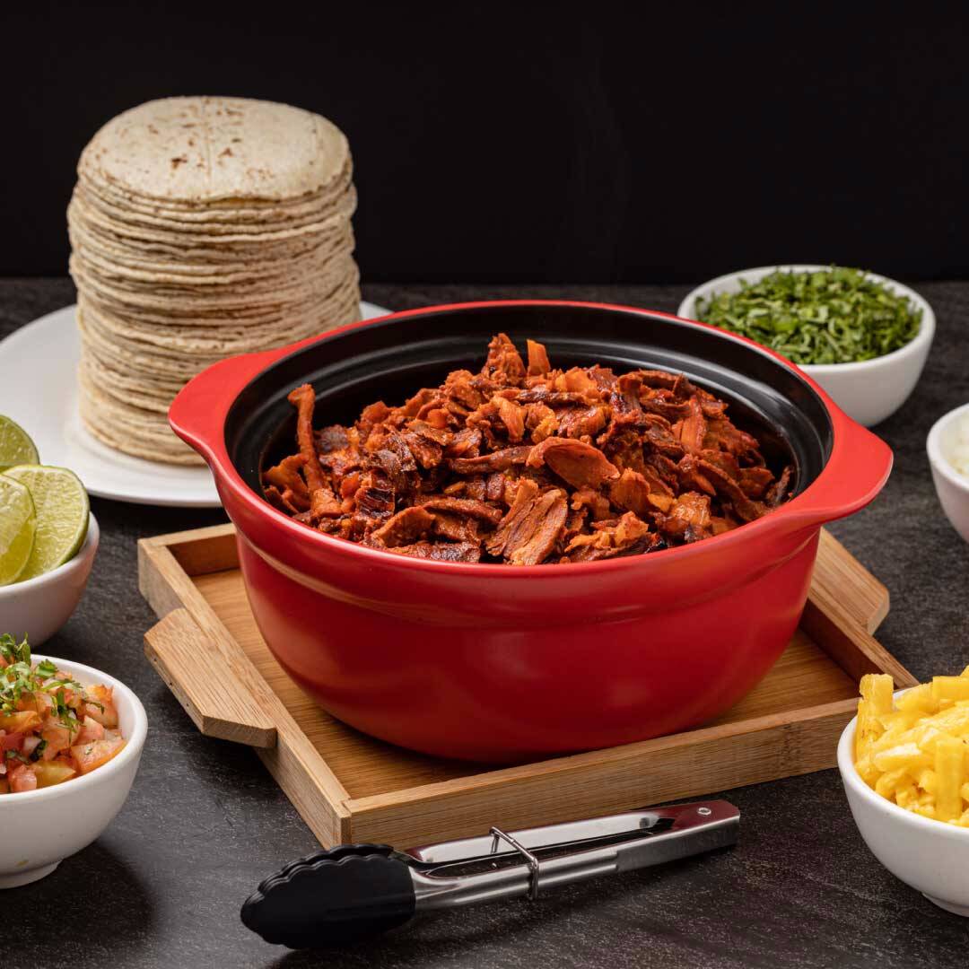 1 Tortilla de su elección, queso gratinado, con deliciosa carne al pastor.