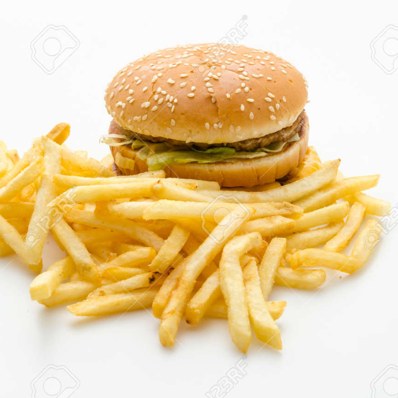 Hamburguesa acompañada de orden de papas a la francesa.