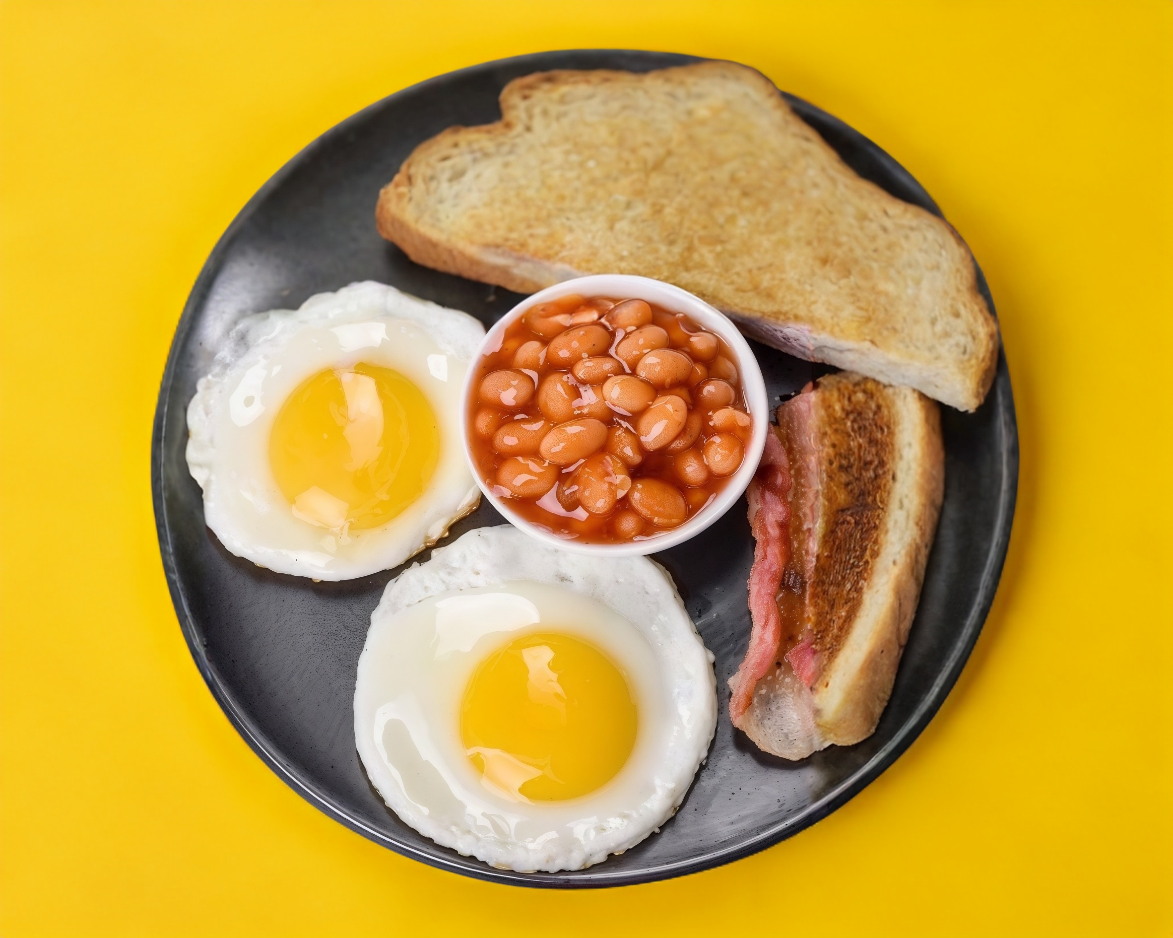 3 huevos revueltos o estrellados con tocino; acompañados de unos deliciosos frijoles de su eleccion y queso panela. Incluye: 1 taza de cafe de su eleccion.